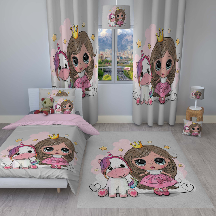 ست اتاق خواب کودک روتختی، پرده و فرشینه طرح دختر با یونی کد k-101