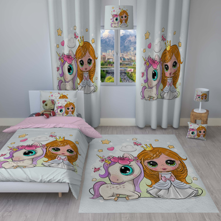 ست اتاق خواب کودک روتختی، پرده و فرشینه طرح دختر با یونی کد k-102