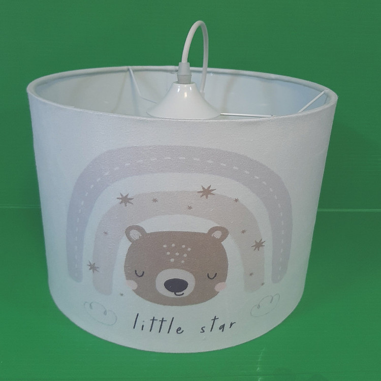 لوستر طرح پرطرفدار طرح جدید خرس رنگین کمونی با توجه به درخواست و نیاز مشتریان بصورت تک لوستر هم ارائه شد . جنس سازه لوستر از فلز و شید آن از طلق نسوز ضخیم و مخمل با رنگ ثابت و کیفیت چاپ عالی می باشد . بهتر است بدانید شید های پارچه ای انتشار دهنده نوری گرم و درخشان تری هستند و حتی در حالت خاموش هم می توانند به فضا اتاق گرمای بیشتری انتقال داده و محیط دلنشینی را برای اتاق شما فراهم کند.