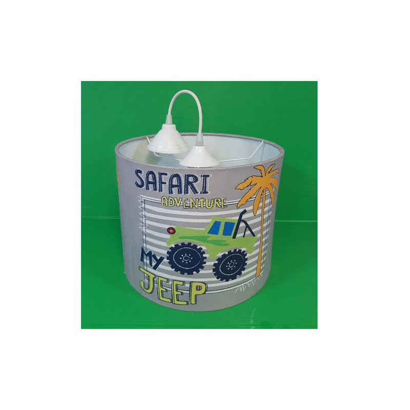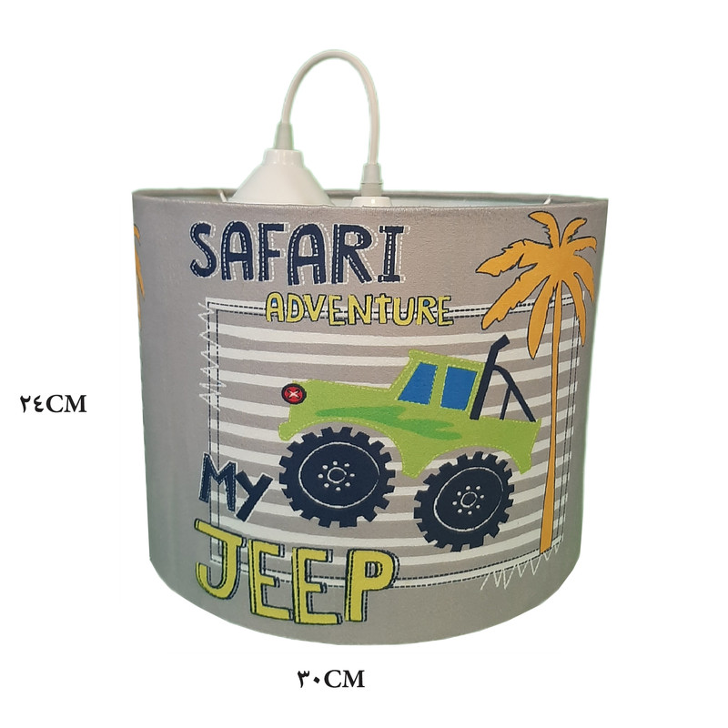 لوستر پرطرفدار طرح جدید جیپ سافاری با توجه به درخواست و نیاز مشتریان بصورت تک لوستر هم ارائه شد . جنس سازه لوستر از فلز و شید آن از طلق نسوز ضخیم و مخمل با رنگ ثابت و کیفیت چاپ عالی می باشد . بهتر است بدانید شید های پارچه ای انتشار دهنده نوری گرم و درخشان تری هستند و حتی در حالت خاموش هم می توانند به فضا اتاق گرمای بیشتری انتقال داده و محیط دلنشینی را برای اتاق شما فراهم کند.