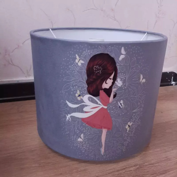 لوستر اتاق کودک طرح دختر دعاگو با زمینه طوسی می باشد جنس بدنه از فلز با رنگ گوره ای و شید ها از پارچه مخمل با رنگ ثابت می باشند شید هاب پارچه ای انتشار دهنده رنگ درخشان تری می باشند و حتی در حالت خاموش به اتاق کودک زیبایی خاصی می دهند