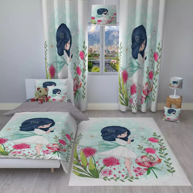 ست اتاق کودک روتختی دو پنل پرده هازان و لوستر طرح دختر با قاصدک ( پس کرایه )