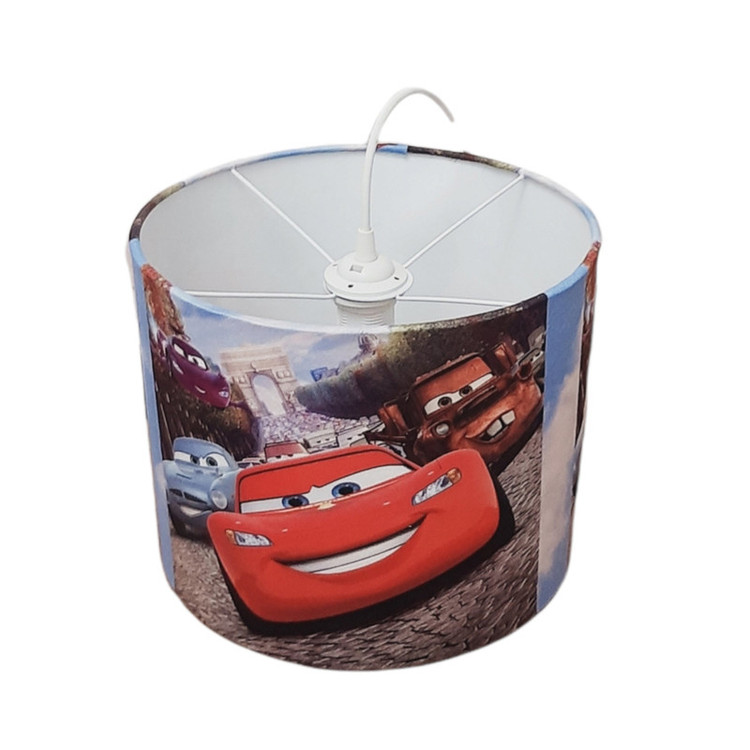 ت اکسسوری اتاق کودک طرح پرطرفدار مک کوین ها شامل لوستر ، آباژور و ساعت دیواری می باشد که با توجه به درخواست شما و نیاز مشتریان بصورت تک لوستر هم ارائه شد . جنس سازه لوستر از فلز و شید آن از طلق نسوز ضخیم و مخمل با رنگ ثابت و کیفیت چاپ عالی می باشد . بهتر است بدانید شید های پارچه ای انتشار دهنده نوری گرم و درخشان تری هستند و حتی در حالت خاموش هم می توانند به فضا اتاق گرمای بیشتری انتقال داده و محیط دلنشینی را برای اتاق کودک دلبندتان فراهم کند.