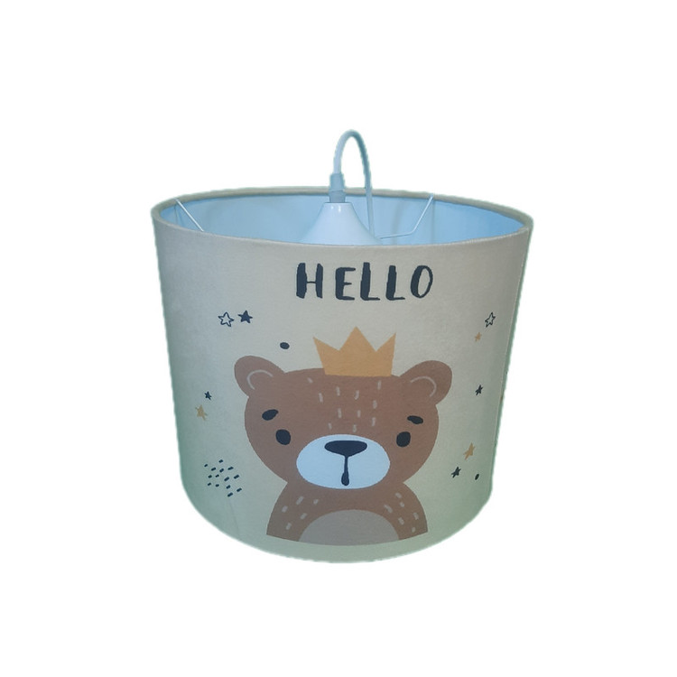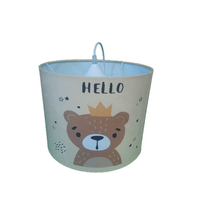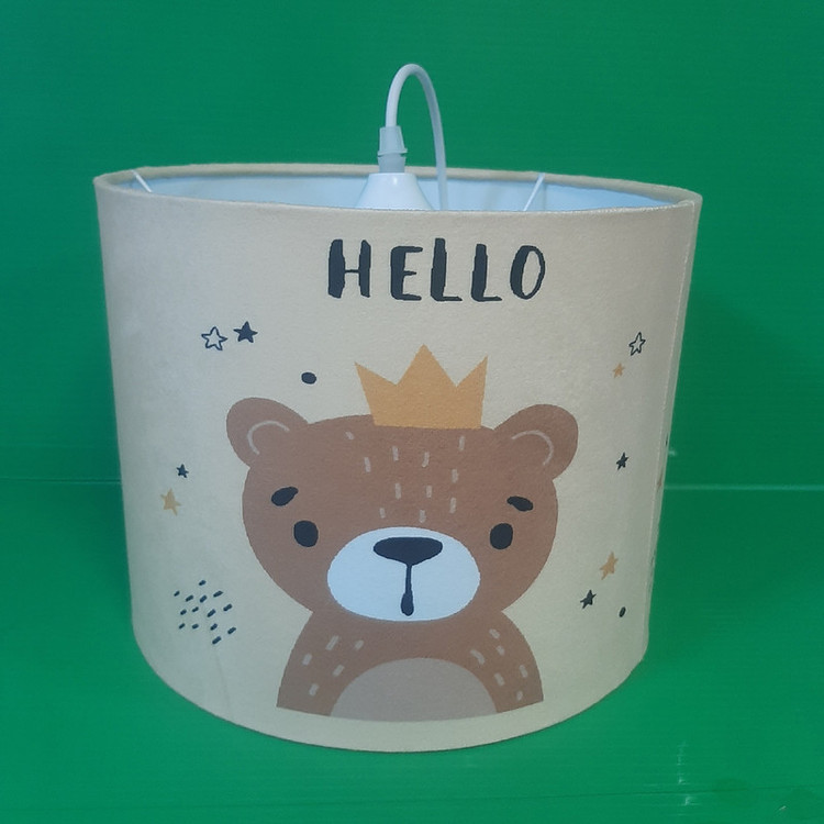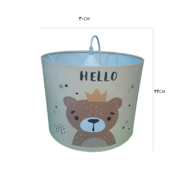 لوستر طرح پرطرفدار طرح جدید خرس پادشاه با توجه به درخواست و نیاز مشتریان بصورت تک لوستر هم ارائه شد . جنس سازه لوستر از فلز و شید آن از طلق نسوز ضخیم و مخمل با رنگ ثابت و کیفیت چاپ عالی می باشد . بهتر است بدانید شید های پارچه ای انتشار دهنده نوری گرم و درخشان تری هستند و حتی در حالت خاموش هم می توانند به فضا اتاق گرمای بیشتری انتقال داده و محیط دلنشینی را برای اتاق شما فراهم کند.