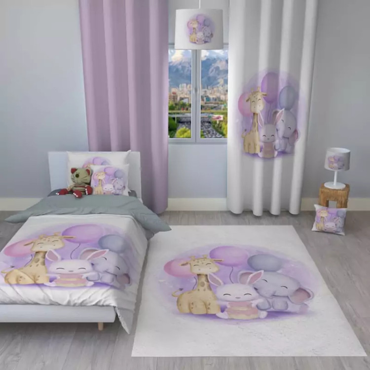 ست اتاق کودک روتختی، پرده و فرشینه طرح فیل و زرافه و خرگوش