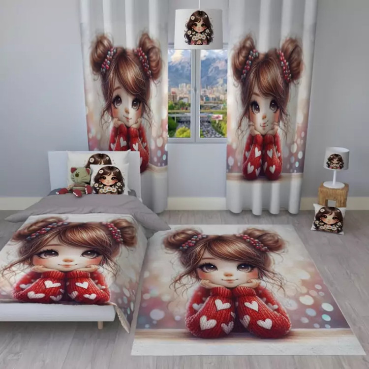ست اتاق کودک روتختی دو پنل پرده و فرشینه یک در یک و نیم طرح عروسکی ناز