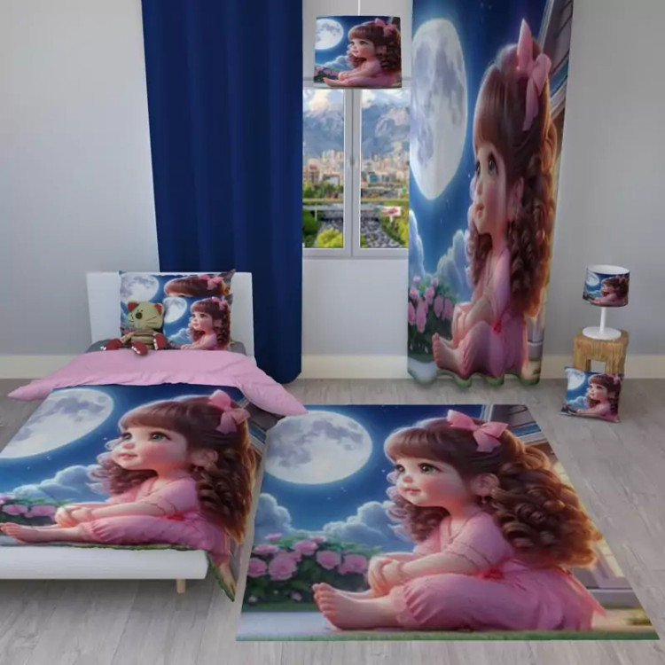 ست اتاق کودک روتختی ، پرده و فرشینه طرح عروسکی با ماه