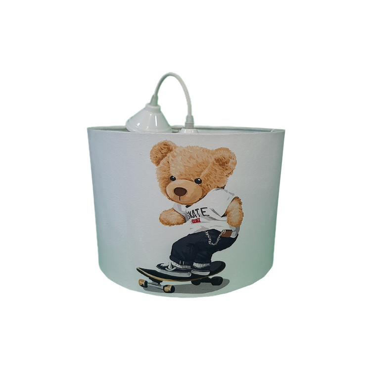 لوستر طرح پرطرفدار طرح جدید خرس تدی اسکی باز با توجه به درخواست و نیاز مشتریان بصورت تک لوستر هم ارائه شد . جنس سازه لوستر از فلز و شید آن از طلق نسوز ضخیم و مخمل با رنگ ثابت و کیفیت چاپ عالی می باشد . بهتر است بدانید شید های پارچه ای انتشار دهنده نوری گرم و درخشان تری هستند و حتی در حالت خاموش هم می توانند به فضا اتاق گرمای بیشتری انتقال داده و محیط دلنشینی را برای اتاق شما فراهم کند.