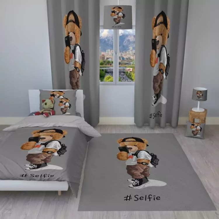 ست اتاق کودک روتختی، پرده و فرشینه طرح تدی سلفی